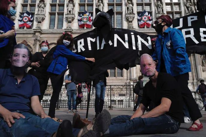 ▵7月10日星期五在巴黎和其他幾個城市舉行的抗議活動,反對捲入性侵案件的內政部長Gérald Darmanin,同時抗議曾極力批評#MeToo運動的新任司法部長Eric Dupond-Moretti。