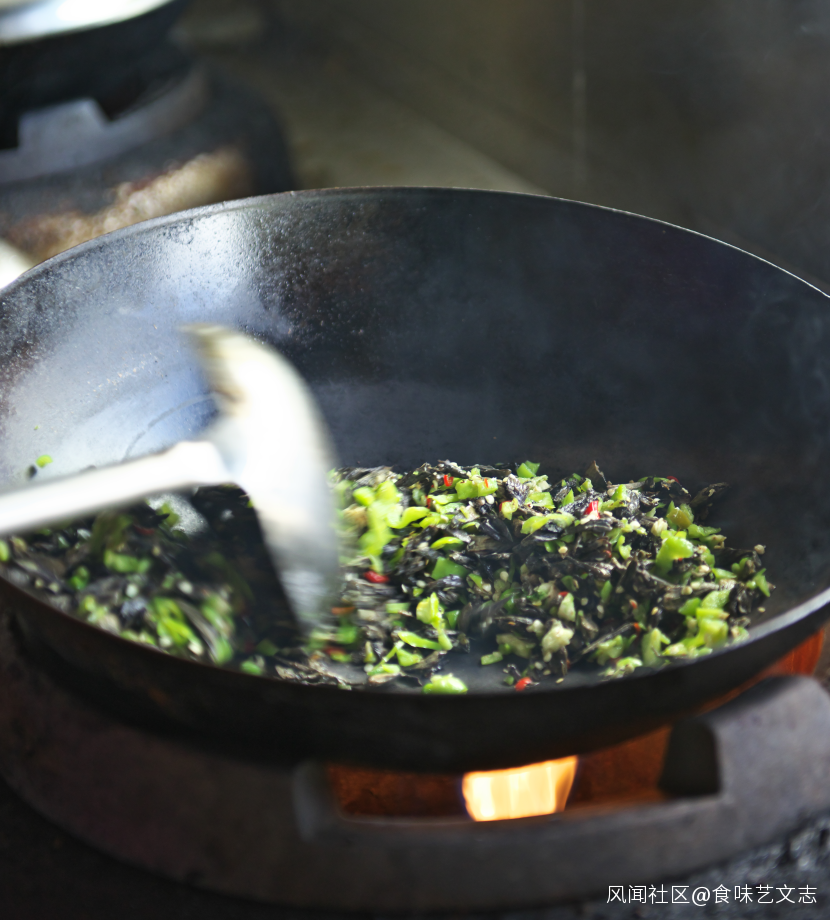 而**紅蘑鮮美的風味,則是土豆最好的搭配和獎賞。**紅蘑土豆片要用春夏之際收穫的紅蘑曬乾,濃縮凝固季節限定的風味。儲藏到秋天土豆收穫的時候,再泡發來炒。配菜不宜多,胡蘿蔔、尖椒、蒜瓣,簡簡單單清炒後,下水略燉,紅蘑的滋味,就會滲入每一片土豆之中。