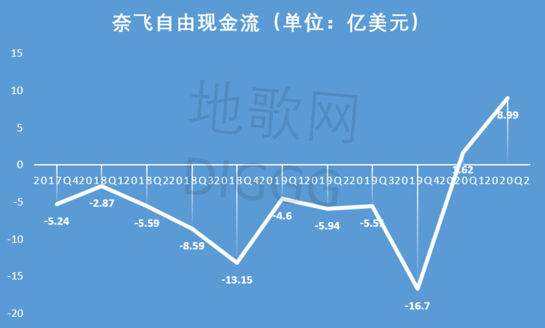 同時,自今年一季度開始,奈飛現金流“轉正”。本季度,奈飛自由現金流達8.99億元,不僅由負轉正,且同比大增251%,創下上市以來新高。
