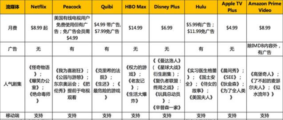 到如今,算上剛於6月上線的環球影業流媒體服務“Peacock”,美國市場共有8家流媒體平台一決高下,流媒體“眾神之戰”的局面極為膠着。