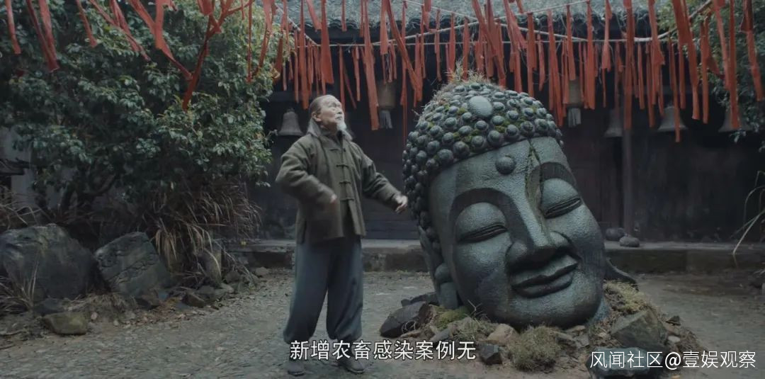 ▲ 《河神》系列中的佛頭但《河神2》卻也不是一成不變的。最為明顯的一處是片頭的變化:每集出場人物都有不同關鍵詞提示。這是田裏導演第一季未完成夢想的實現時刻。“這個片頭的形式不是基於劇作目的去做的,而是我們想做一些別人沒做、不一樣的形式,也是一種儀式感。”