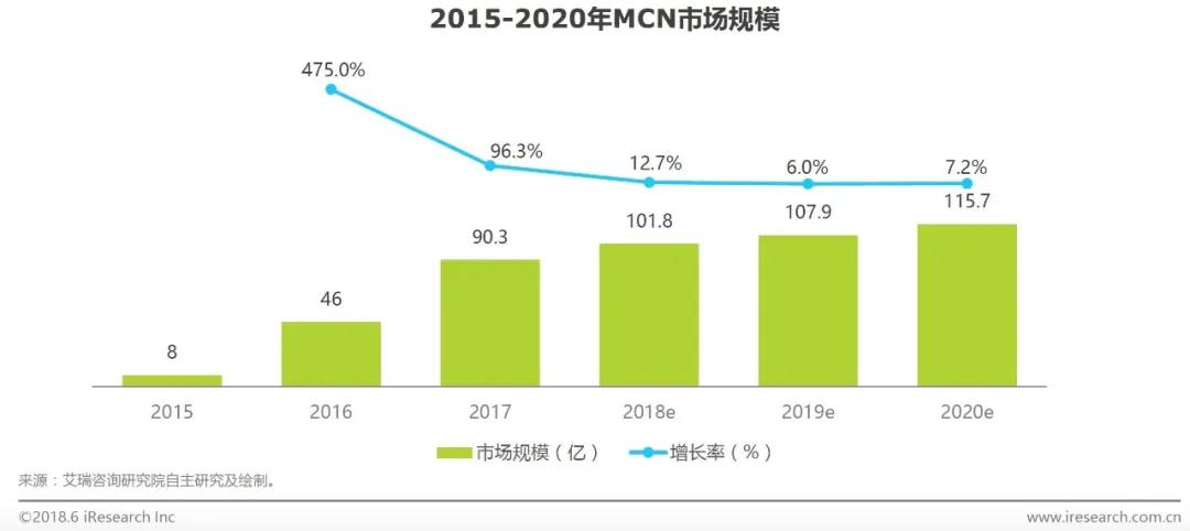 但不容忽視的是,自稱為MCN公司的增速,比網紅市場經濟的增速還快。據艾瑞諮詢調查,2019年MCN機構已經超過2萬家,從2015起年複合增長率超過234%。