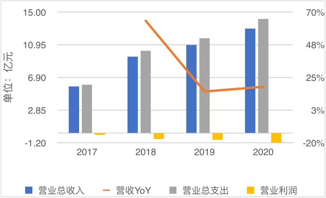 2017財年至2020財年,如涵的營收保持了15%以上的增長,但支出增速更快,導致營業虧損逐年擴大,虧損率從2017財年的3.8%,逐步擴大至2020年的9.1%。