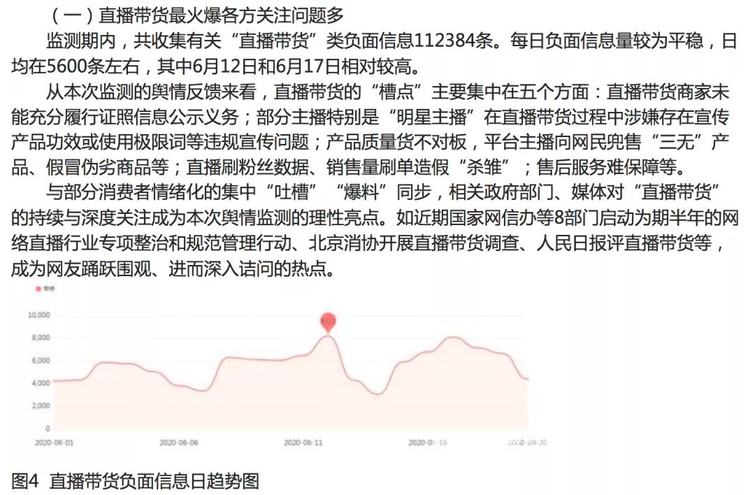 中國消費者協會2020年6月29日發佈的《“618”消費維權輿情分析報告》中總結了現在互聯網直播帶貨的五大槽點,並直言“有些直播帶貨的言而無信、忽悠第一,責任意識、品質意識的缺失就格外值得警惕”。