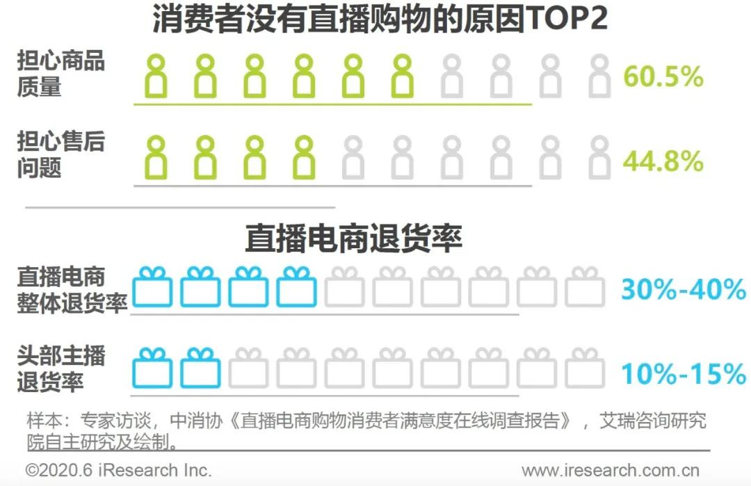 網紅直播帶貨雖然GMV高,但是產品品質難保障,退貨率也高居不下。據艾瑞諮詢2020年6月的報告顯示,直播電商整體退貨率高達30%-40%,甚至有些小廠商在支付完帶貨佣金後發現售出的產品有90%都被退貨。