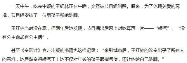 在《變形計》中,節目組為了體現新學校的關愛,安排了一位男孩子幫她洗腳。