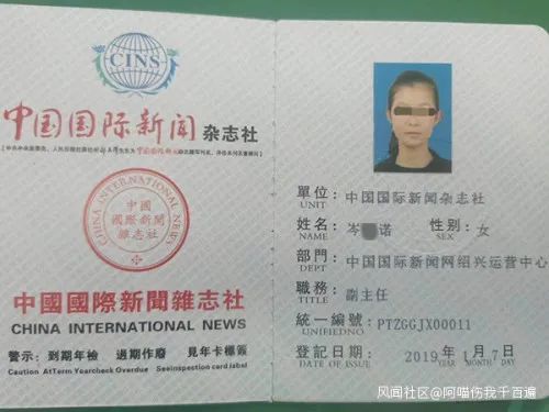 岑某諾的諸多“榮譽頭銜”看着都特別唬人,比如她作為“記者”任職的“中國國際新聞網”,名頭聽着響到不行,乍一看這可是“國字頭”啊。