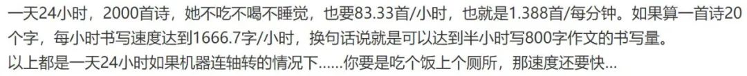 面對社會對“日作2000首詩”的質疑,岑父竟然表示**“毫無誇大”,甚至還説,再努力點,“一天寫2500首、3000首也不一定”。**