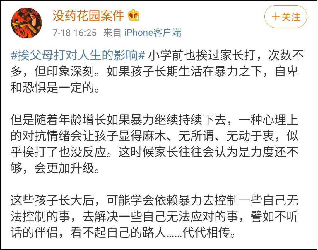 如果經歷過,更不能讓自己的孩子經歷。他們是比自己弱小的人,不是泄憤的藉口。
