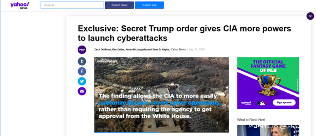 雅虎新聞:特朗普密令授予CIA更多發動網絡攻擊的權力