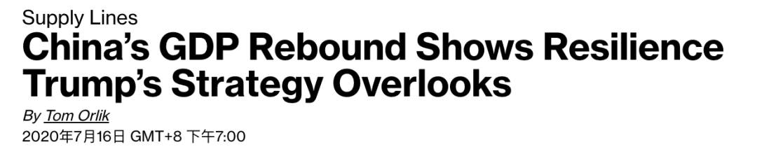 彭博社7月16日報道,原題:中國GDP反彈顯示特朗普戰略所忽視的中國韌性