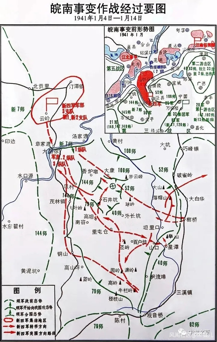 可就是在如此嚴厲的催促之下,項英還是非要拖到兩黨確定的最後期限12月底以後,到了1941年的1月4日,這才開始移動。你可別小看這四天,1月4日走和12月31日走大不一樣。從軍事上説,這時的國民黨軍已經基本完成了合圍,沿途已經沒有太平之路可走了;從政治上説,已經超出了規定的時間底線,國民黨軍師出有名了。不論從軍事上説還是從政治上説,從哪兒説都被動了。就像李一氓哀嘆的那樣,“假如能提早四五天,結果也不會如此之難堪。”