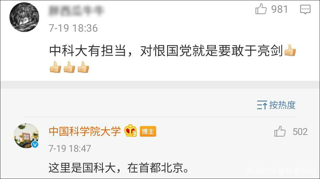 網友把中國科學院大學簡稱搞錯了,國科大在線回應_風聞