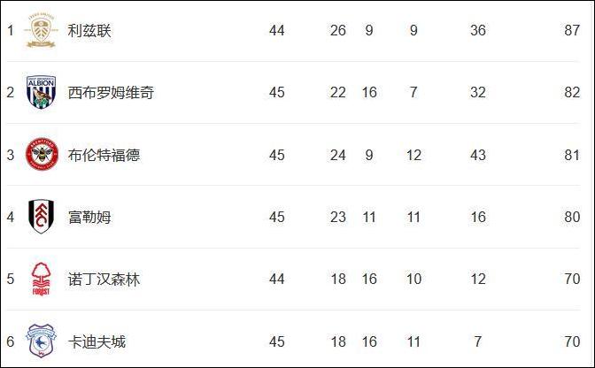 北京時間18、19日凌晨,英冠倒數第二輪兩場焦點戰役打響。排名第二的西布羅姆維奇隊客場1:2不敵哈德斯菲爾德隊,排名第三的布倫特福德客場0:1不敵斯托克城,兩隊都已無法超越少賽一場的“白玫瑰”利茲聯隊,後者將以英冠冠軍的身份挺進下賽季英超。