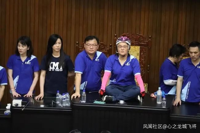 打鬥中,來自金門的國民黨“立委”陳玉珍,頭戴運動頭盔,手戴防滑手套,腳穿釘鞋,還穿幾層衣物以保護身體邊角,以隻身之力佔據主席台近一個小時,一戰成名。