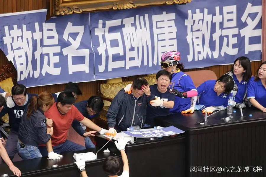 論在“立法院”抗爭,國民黨確實差民進黨很多。過去國民黨人數優勢,怕被外面批評多數暴力,反而束手束腳。而民進黨人數雖少,但確實敢打敢拼,無所不用其極,用強力膠黏住門鎖,踹門、潑水、掌摑。