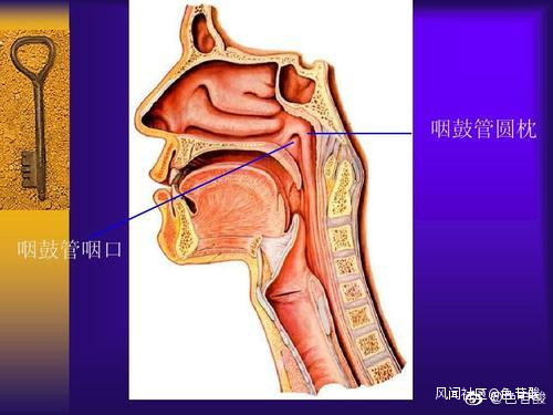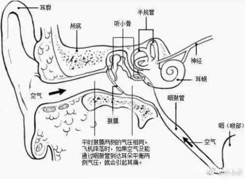 在鼻咽部有一個開口叫咽鼓管開口,這個地方通過咽鼓管通向中耳腔。這樣,耳、鼻、口腔、咽、喉就產生了聯繫,他們都是含有空氣的腔隙。靜止的時候,咽鼓管開口是關閉的,但是咀嚼通過咽口的肌肉可以開放咽口,空氣能夠在中耳和鼻咽部流動,保持中耳內氣壓的平衡。這也是為什麼坐飛機和高鐵通過隧道的時候容易耳悶,如果感覺耳悶可以嚼口香糖或打哈欠來開通咽鼓管。如果是因為鼻炎、鼻竇炎或者是腫瘤引起的咽鼓管不能開放需要治療。