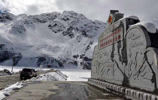 扎墨公路經海拔4300米的嘎隆拉雪山冰湖蜿蜒向前。