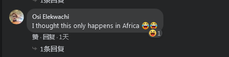 網友Osi Elekwachi調侃説,“我以為這事兒只會發生在非洲。”↓