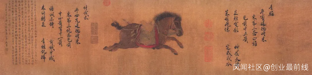 這些馬都是四蹄騰空前後伸直,而且無論是中國古代的昭陵六駿,還是清代宮廷畫家郎世寧,還有無數中西方畫家的畫中,大致的姿勢都是這樣的。