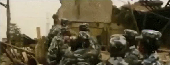 ▲拿着衝鋒槍去救災,真的是活久見
