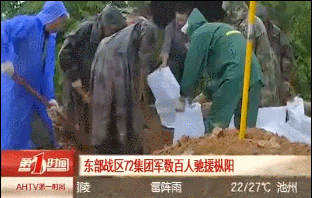 在鄱陽縣,第72集團軍某旅1500餘名官兵,扛起“解放軍來了”的大旗,加入加固堤壩、封堵管湧的抗洪大軍之中。