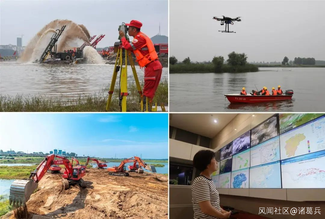 我們有了遙感衞星用於雨量監測,有了無人機用於洪峯巡查,有了更高效率的充水式帆布沙袋,有了能深入大型機械不便深入的步履式挖掘機,有了實時保證指揮通常的5G技術,這些都是中國應對災難可喜的變化。