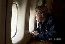 ▲布什在休假返回的飛機上,看了一眼新奧爾良