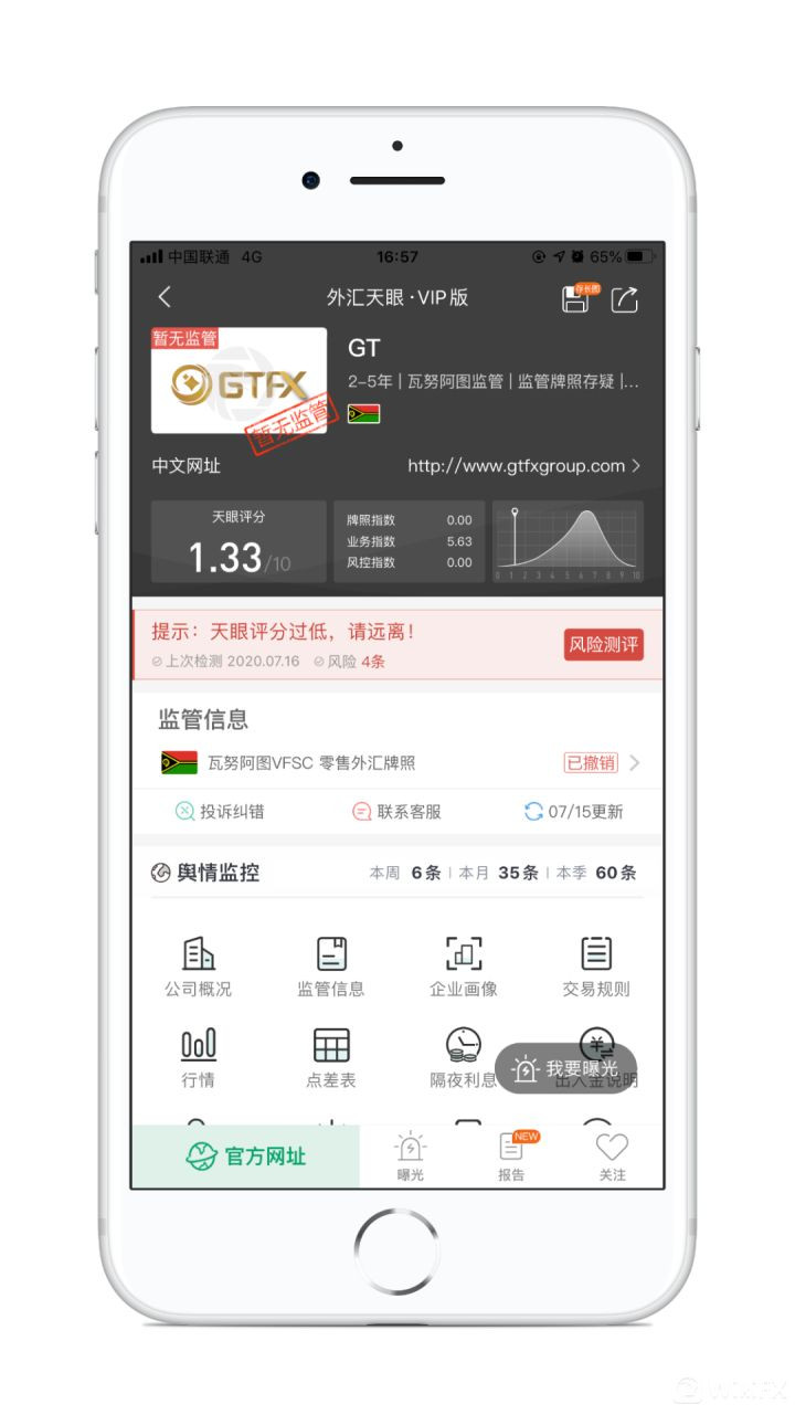 GT,天眼評分1.33分,其所持牌照被撤銷後,當前無任何實際有效監管,存在巨大風險,建議遠離!