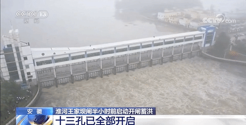20日8時起,淮河水利委員會提升淮委水旱災害防禦應急響應至I級,併發布洪水紅色預警。淮河流域防汛形勢十分嚴峻。為緩解淮河防汛壓力,20日8時31分,王家壩13孔閘門全部開啓,向蒙窪蓄洪區分洪。(詳情見>>>)