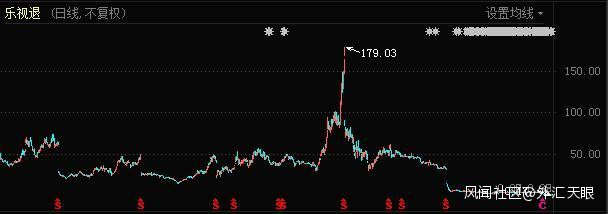 業務的成功讓樂視網股價一路上漲,2015年5月12日達到歷史最高點179.03元。