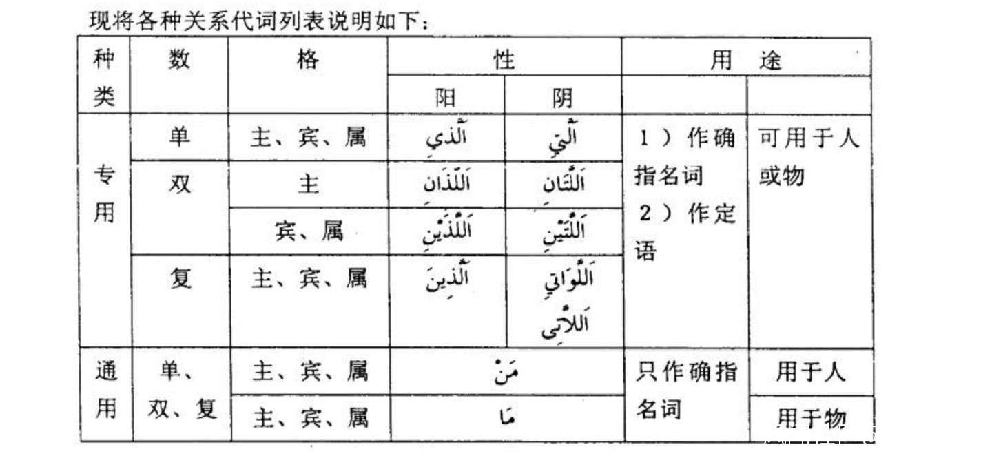 阿拉伯語關係代詞非常簡單,分專用關係代詞和通用關係代詞兩類。
