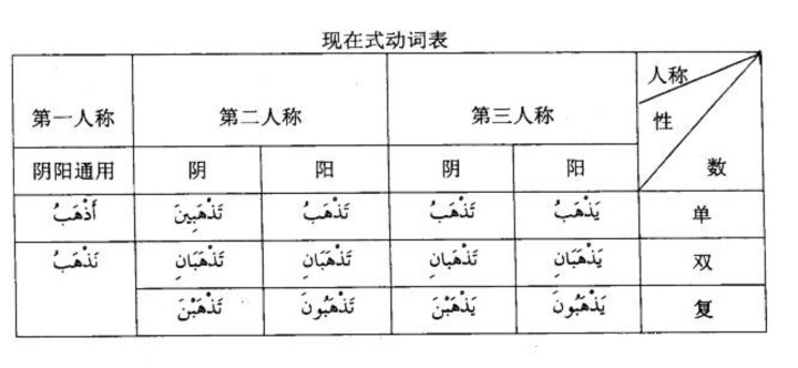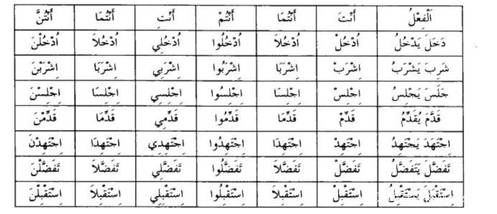 阿拉伯語動詞有14個人稱不假,但是動詞的基本時態只有過去式、現在式和命令式三種。