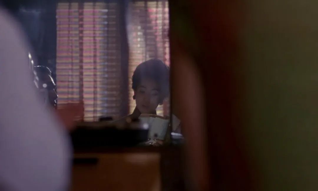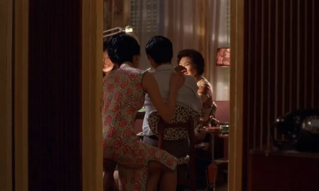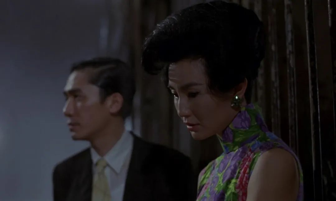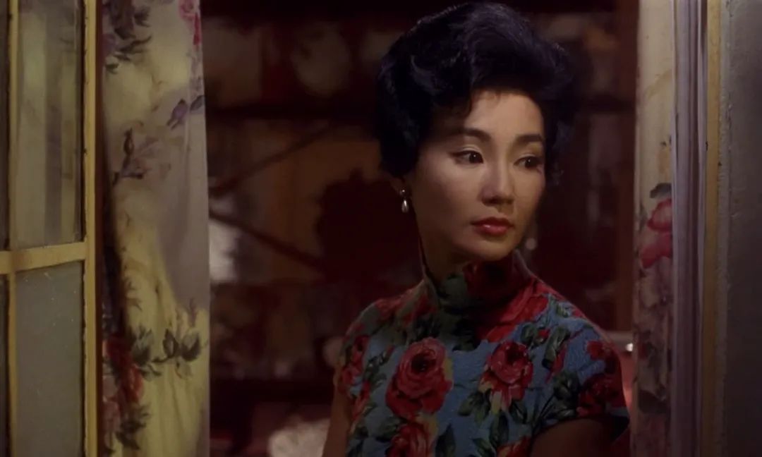 不知道大家是否記得那個場景,窗外是上海方言所形成的畫外音,顯示小巷當中這些家庭主婦們之間的閒談,而畫面是張曼玉站在一扇打開的三連窗中間,穿着一件胸前有一朵非常華麗的大花的旗袍。