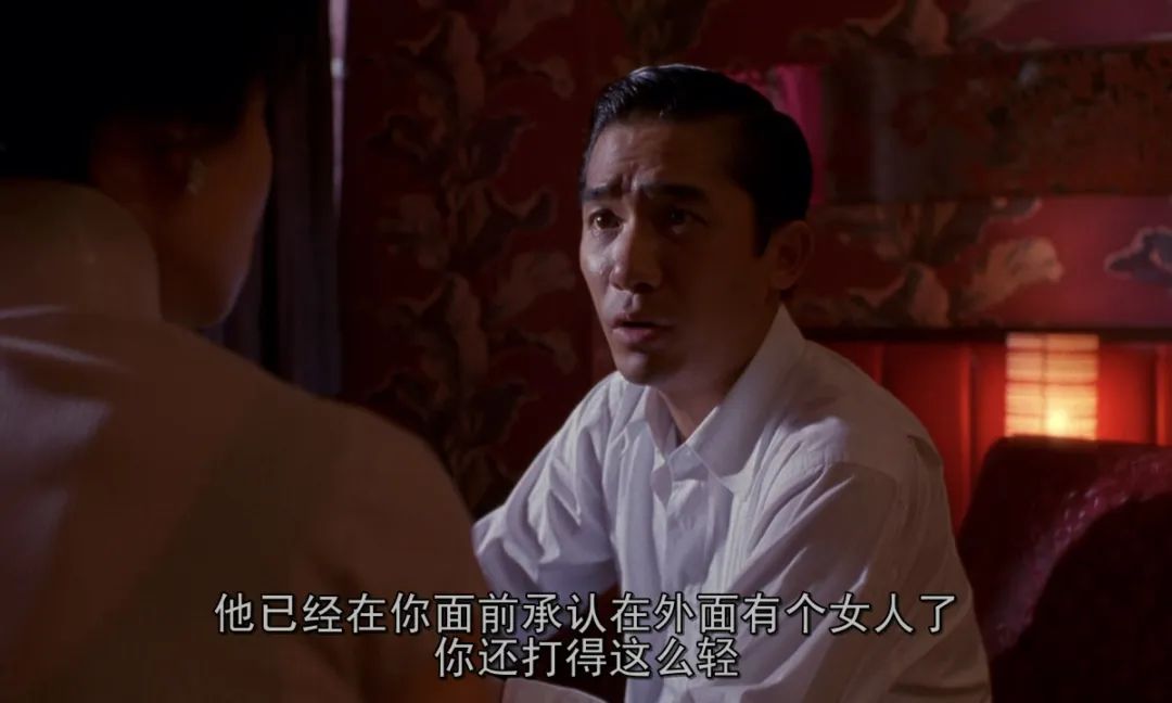 很多人都記得那個場景,當梁朝偉去扮演丈夫,終於承認了自己已然移情別戀的時候,這裏了響起了非常微弱的、無力的耳光聲。梁朝偉用極端温和的深情的態度説:他都承認在外面有女人了,你還打這麼輕嗎?
