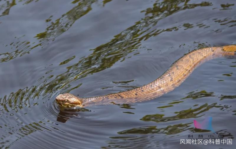 蛇沒有四肢,但基本上所有蛇都會游泳,無論體型大小,而且姿勢也差不多:把身體彎曲成獨特的“S”形並左右扭動,並藉助水提供給它們的反作用力前進。