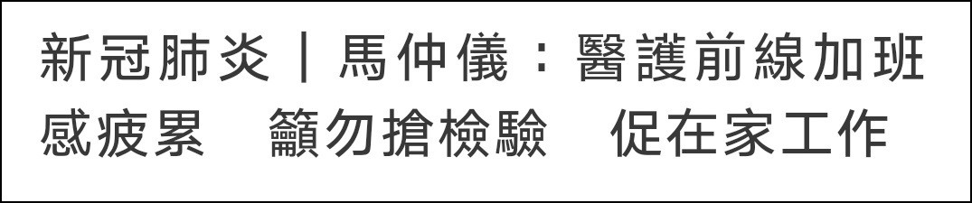 此外,馬仲儀還指出一些私營公司要求員工必須出具健康證明才能重回崗位的做法,也在短時間內加重了衞生署同事的負擔。