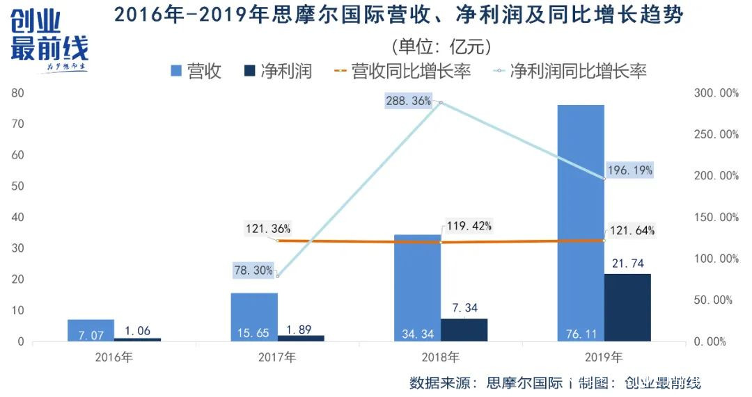 電子煙歷來是暴利行業,作為龍頭的思摩爾國際,2016-2019年營收分別為7.07億元、15.65億元、34.34億元和76.11億元,每年都是翻倍增長;淨利潤分別為1.06億元、1.89億元、7.34億元和21.74億元,最大年增速超過288%;毛利率一路從2016年的24.3%增加至2019年的44%。