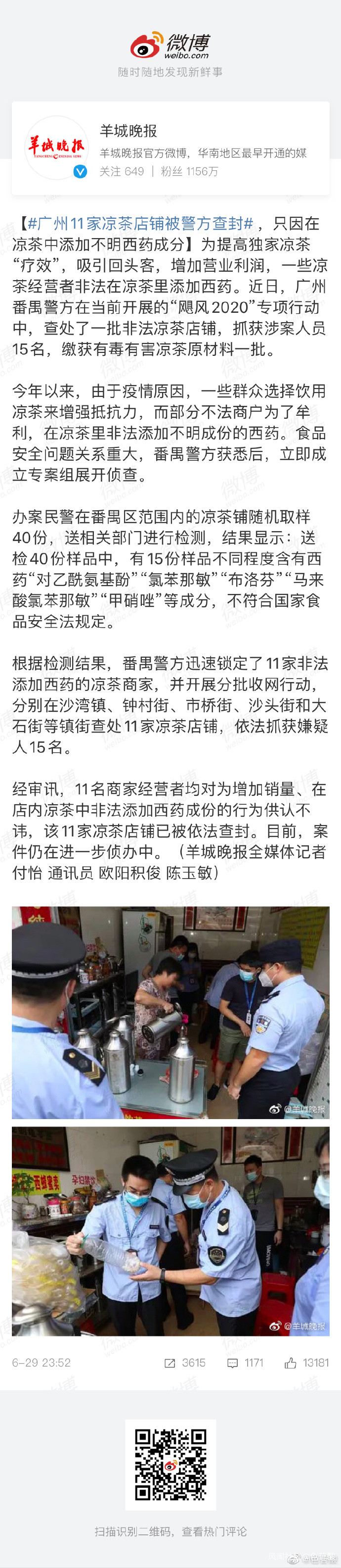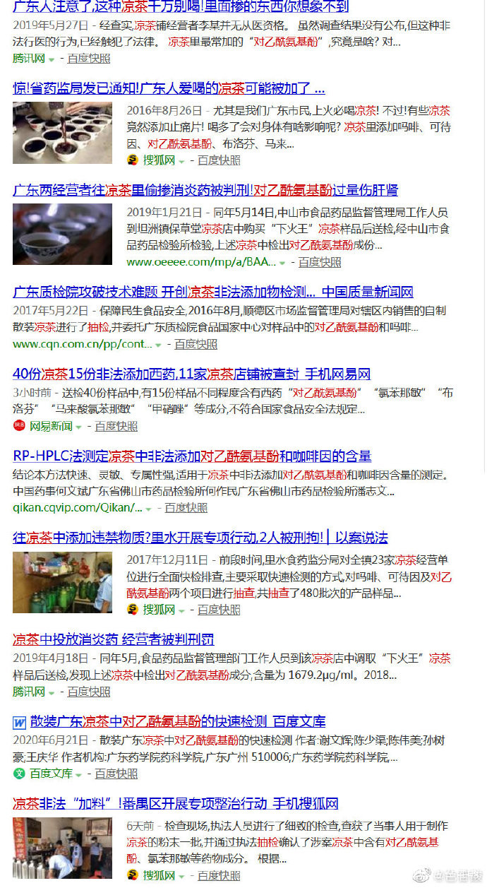 羊城晚報6月30日發個涼茶裏查出對乙酰氨基酚的新聞一下火了。