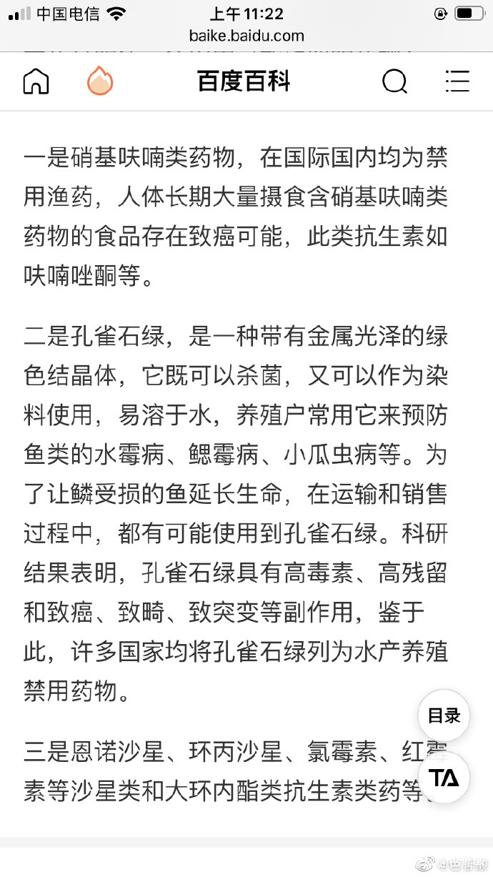 我隨便搜索了一下中國人常吃的兩類動物魚和雞所用的抗生素,常見藥物有:土黴素氯黴素卡那黴素硝基呋喃環丙沙星孔雀石綠慶大黴素四環素金黴素多西環素鏈黴素等等,也包括部分人類不常用的頭孢菌素品種和某些抗病毒藥物。這些藥物有的已經禁止在人體使用,有的基本上限外用(如氯黴素口服或注射容易肝衰竭),但是在動物飼養中都是拋灑或拌入飼料添加的,用量難以控制。但是不用是不現實的。例如奶牛容易發生乳腺炎,不使用抗生素治療,奶牛隻能退奶,一年就浪費了。魚塘不用抗生素和抗黴菌藥物,魚容易翻塘。養雞場封閉狹仄,真菌細菌感染必須靠藥物壓制。這種局面下,人攝入的抗生素很容易超標,微生物耐藥的問題非常嚴峻。(此處需要補充的是,目前國家加強了對肉蛋奶的藥物檢測,一般越大的商業機構購買的可靠性會越高一些)