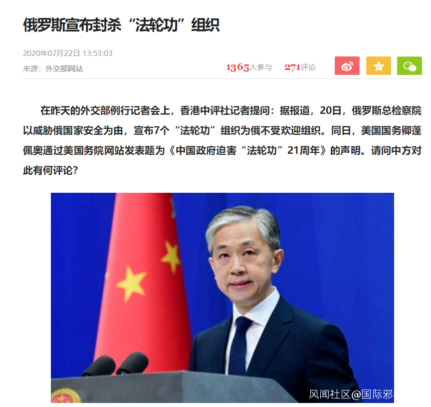 俄羅斯宣佈封殺邪教“法輪功” 外交部回應_風聞
