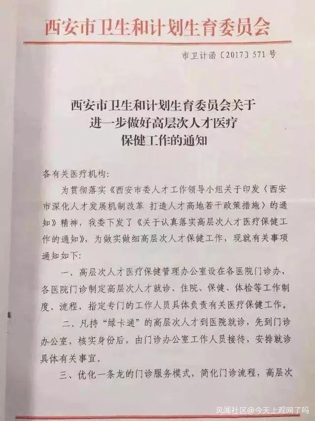經過查詢,西安市原衞計委曾在2017年下發通知,規定高層次人才可以看病優先,掛號免費。