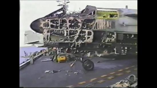 1988年11月30日,“尼米茲”號在阿拉伯海執行任務。期間有水手維修航母上的近防炮,哪知這門炮突然走火,一發20毫米加農炮直接幹掉了甲板上一架KA-6攻擊機,飛機瞬間爆炸引發大火。隨後大火蔓延至另外六架飛機,期間兩人喪生。