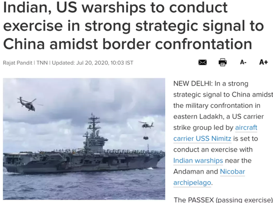 《今日印度》聲稱,此舉是在中印雙方加勒萬河谷地區發生衝突後“向中國發出的強烈戰略信號”。這意思就好像印度在邊境受了多大的委屈,然後現在終於等到美國給它“拔闖”一樣。