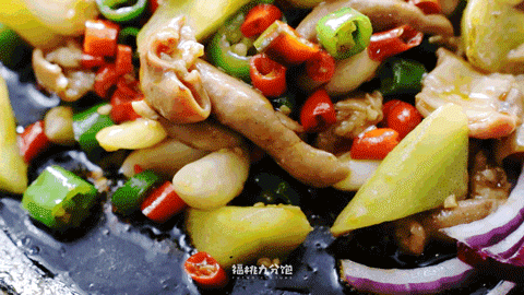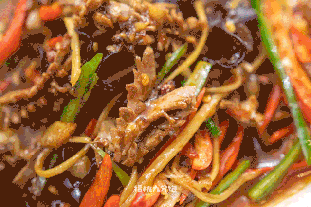 這道鮮鍋仔姜兔是全場最佳,鮮嫩的兔肉在新鮮的青椒、紅椒、花椒和仔姜的加持下,擁有一股特別鮮爽的辣,有滋有味。單獨夾幾根仔姜當配菜吃也不錯,脆生生、水津津。