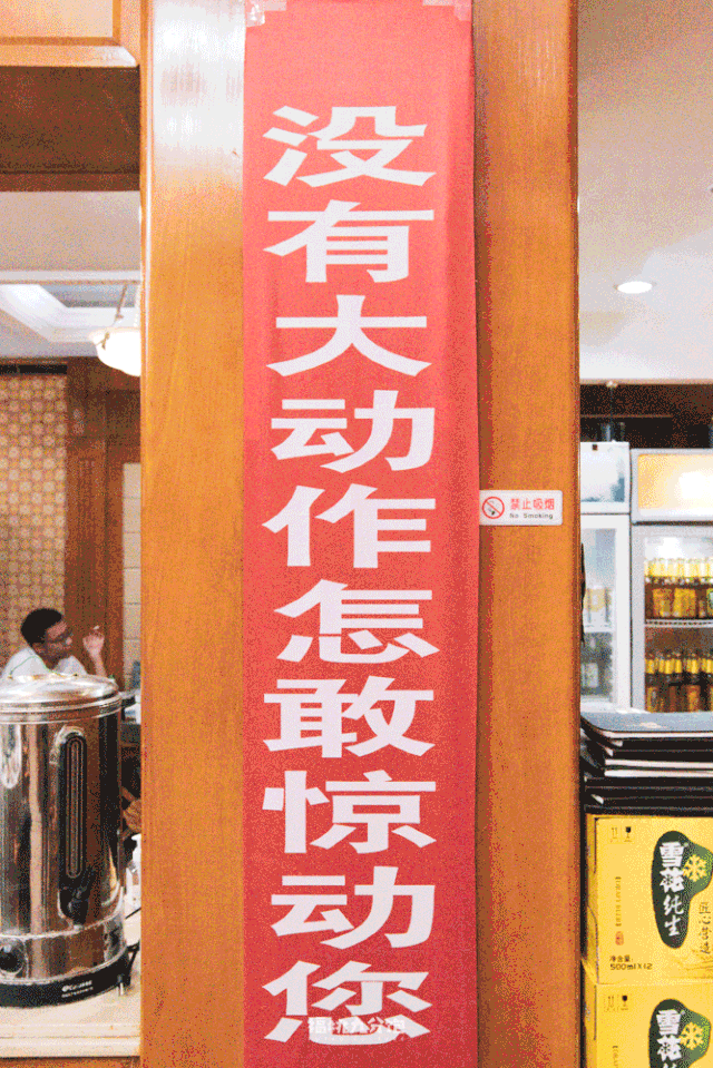 倒是整整掛滿兩面牆的十數個條幅成為整個店面的亮點:“XX酒業大力贊助資州味道復產復工”“XX拉桿箱攜手資州味道大酬賓”“XX家紡感恩資州味道四週年店慶”“沒點大動作哪敢驚動您”……