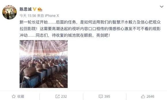 影院復工的消息傳來後,網上一度傳言《唐人街探案3》將會在8月份上映,但很快就遭到了陳思誠導演的闢謠,不過他還是通過微博表達了自己對於影院復工熱血沸騰的心聲: