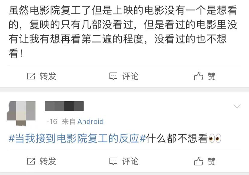 雖然電影院復工對所有喜愛電影的人來説都是一個好消息,但復工後的真實情況其實並不樂觀。
