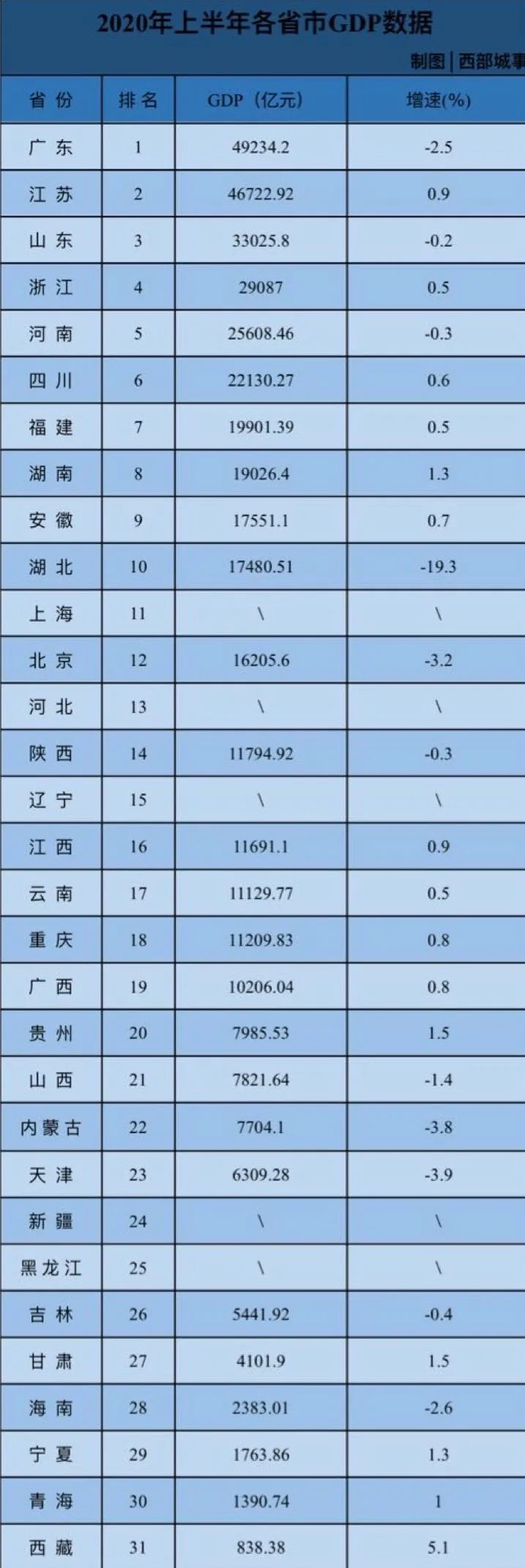 上半年成績單:西藏貴州領跑,內陸省市大爆發,重慶反超廣州有戲?_風聞