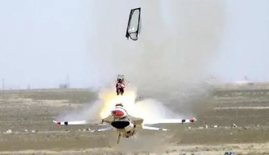 一種是拋蓋式,先將座艙蓋這個阻礙拋掉然後彈射座椅再點火彈射。由於很多現代戰鬥機座艙蓋的透明材料強度較高,直接穿蓋會對飛行員頭、頸部造成傷害,像F16、F22這種採用聚碳酸酯整體座艙蓋的飛機,使用的就是這種方式。